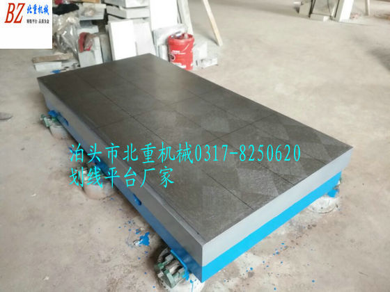 T型槽劃線平臺(tái)材質(zhì):高強(qiáng)度鑄鐵HT200-300工作面硬度為HB170-240,經(jīng)過兩次人工處理(人工退火600度-700度和自然時(shí)效2-3年)使用該產(chǎn)品的精度穩(wěn)定,耐磨性能好。