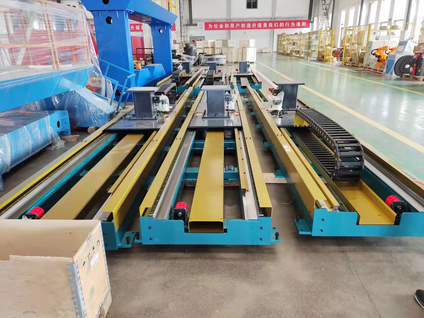 行走軌道可以配合國(guó)產(chǎn)機(jī)器人,也可以配進(jìn)口機(jī)器人使用。如果咱們想要軌道跟機(jī)器人做直接聯(lián)動(dòng),也就是機(jī)器人在行走軌道上面邊走邊工作,那行走軌道里面裝的電機(jī),是需要跟機(jī)器人同品牌同型號(hào)的,所以一般這個(gè)第七軸電機(jī)是需要跟機(jī)器人配套的,可以在購(gòu)買機(jī)器人的時(shí)候跟機(jī)器人廠家來(lái)配。