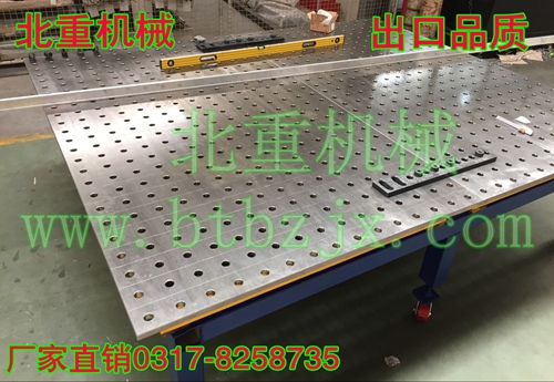 北重機(jī)械制造柔性焊接平臺(tái)的承載能力高,鋼性穩(wěn)定,它的五個(gè)面均加工有規(guī)則的孔,并刻有網(wǎng)線。焊接平臺(tái)可方便地延伸和擴(kuò)展,組合。